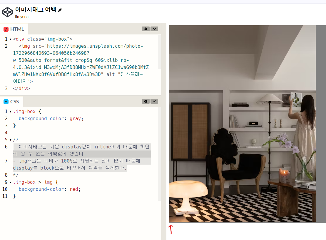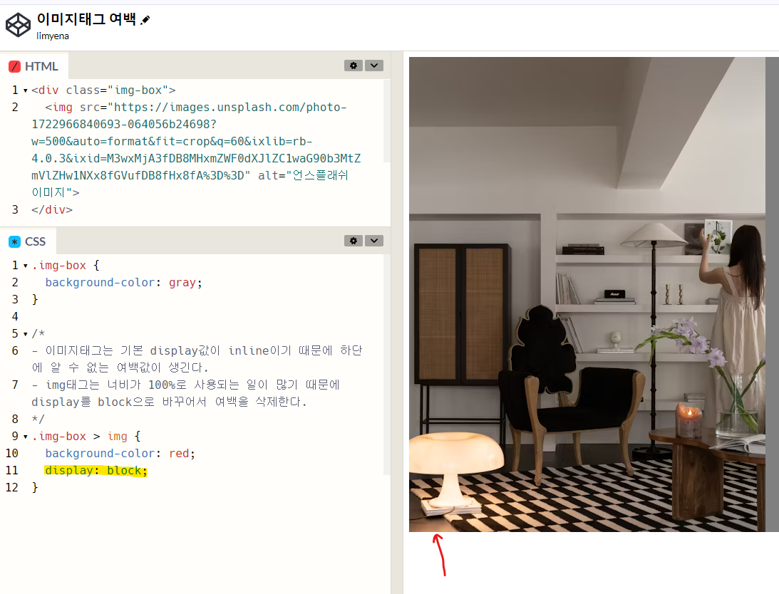 - img태그는 너비가 100%로 사용되는 일이 많기 때문에 display를 block으로 바꾸어서 여백을 삭제한다.